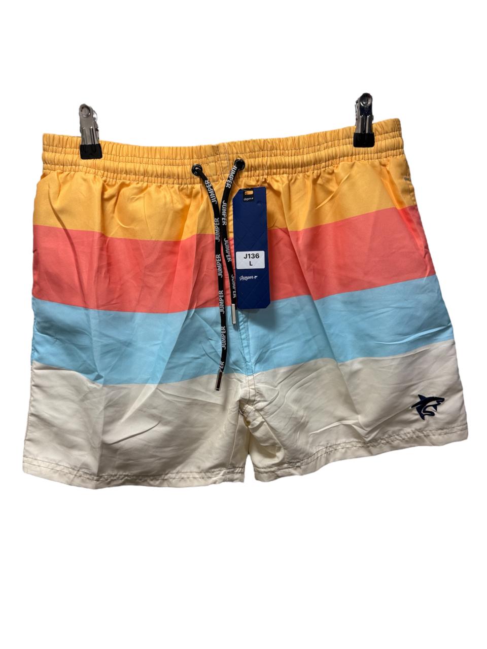 Short de franjas horizontales en amarillo, coral, celeste y beige: