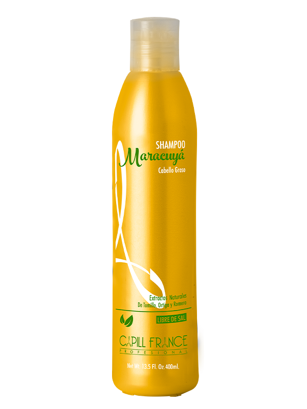El Shampoo Maracuyá Capil France 400 mL está diseñado para cabellos grasos que requieren una limpieza profunda y equilibrante. Su fórmula enriquecida con extractos naturales de maracuyá, romero, tomillo y ortiga regula la producción de sebo, tonifica el cuero cabelludo y revitaliza la fibra capilar. Deja el cabello fresco, ligero y con una sensación de limpieza duradera.